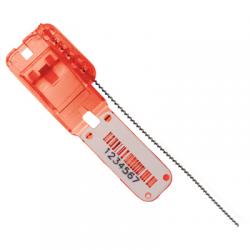 Composed of Hollow Capsule and Folding Cap with locking pins, with Laser-Marked barcode Numbers 128, manufactured in Polycarbonate, with 6" stainless-steel 2 spiralled wire (100 Seals per Bag), used on Utility, weights and measurements, and Transportation applications.